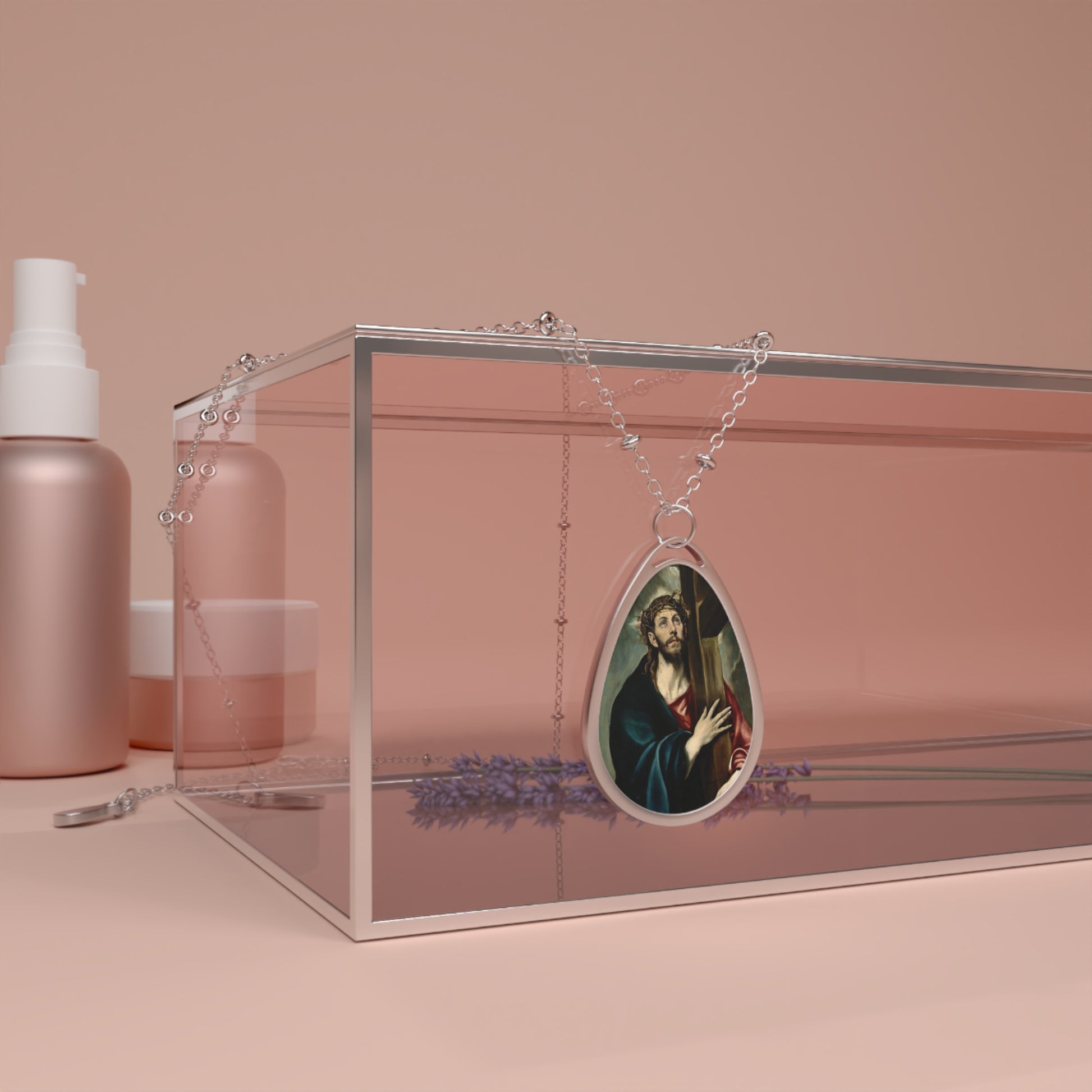 Elegant Oval Pendant Necklace with Jesus Art, Spiritual Jewelry, Gift for Faith Lovers, Unique Christian Accessory, Meaningful Keepsake